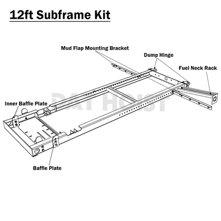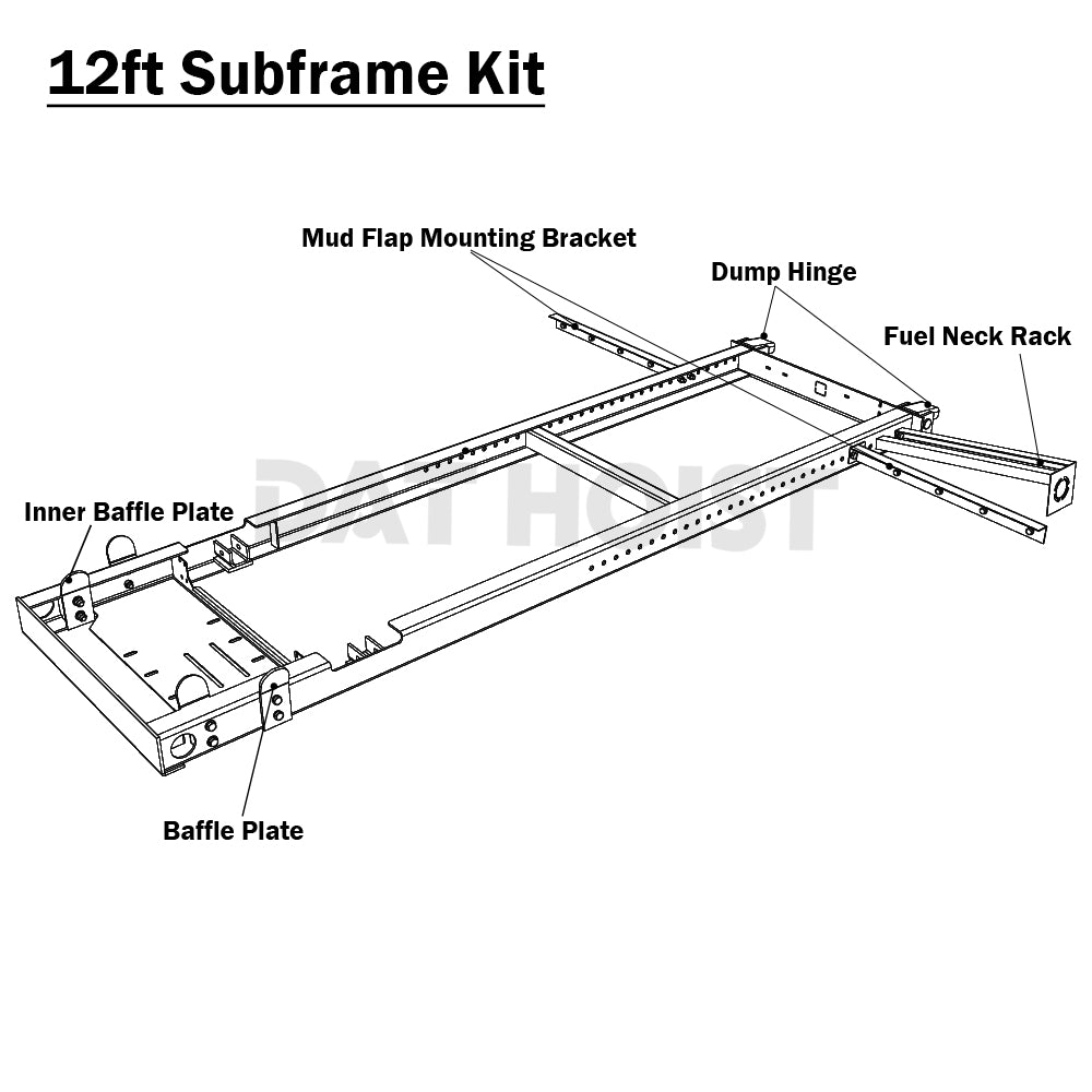 The DAT HOIST 12ft Subframe Kit is engineered to provide a strong, stable foundation for your dump bed system. Designed for use with DH-520 and DH-520-HD hydraulic scissor hoists, this subframe delivers reliable support and precise dumping performance at a maximum angle of 45°.